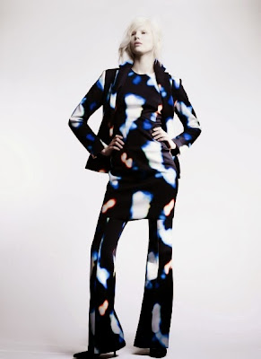 A pluter day is an extra day, that you earn by saving time in your everyday life. So what would you wear on your pluter day? The Minimarket AW13 collection is built like a huge resort collection, for travels all over the world. It doesn’t matter if you spend your pluter day in the heat, or in snowy mountains. The collection theme ends up giving you sci-fi vibes as well as casual western looks. The latter one gives outfits internally called the wanderers. Minimarket has moved on from only using warm colors to letting the cold colors take over. The AW13 collection is filled with blue tones, combined with chryptonite green and some icy whites. The old feel for warm colors still show though, in a nebula pink wool for dresses, and in a mohair outerwear fabric - woven in a white graphic pattern underneath all the mohair threads. The AW13 collection shows a wide spectra of silks, combined with interesting techincal fabrics. The prints for the collections are the Poltergeist print, inspired by TV noise, Diod print - light reflections of moving diod lights, the backlit print inspired by pictures of an unknown lightsource and the indistinct print – the graphic print of the season, inspired by Gio Ponti’s classic 3D cubes.